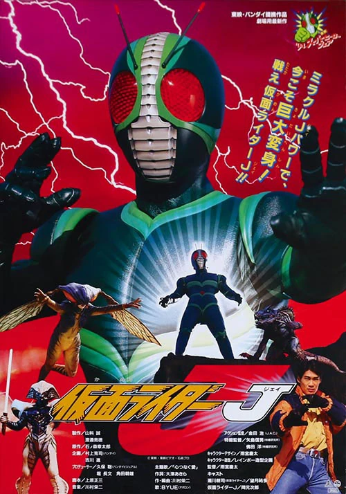 Kamen Rider J, translated as Masked Rider J, is a Japanese superhero tokusatsu film, serving as the 13th entry of the Kamen Rider series and was triple-billed with film versions of Ninja Sentai Kakuranger and Blueswat.